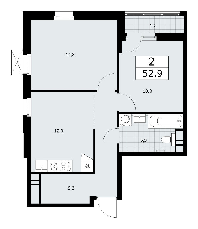 Продаю двухкомнатную квартиру площадью 52.9 кв.м., без отделки, на 17 этаже из 18 в жилом комплексе комфорт-класса "Скандинавия". Квартира угловая, а окна, выходящие на разные стороны дома, дают paвнoмepнoe ocвeщeниe комнат в тeчeниe дня. В квартире одна лоджия, один совмещенный санузел. Высота потолков 2.95 м.