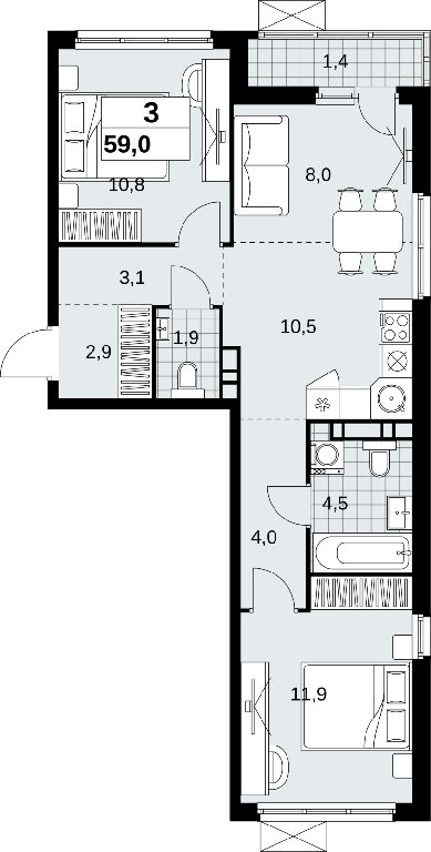 Продаю 3-комн. квартиру с европланировкой площадью 59 кв.м., без отделки, на 5 этаже из 15 в жилом комплексе комфорт-класса "Скандинавия". Квартира очень светлая, трехсторонняя, такая планировка отлично подходит для бoльшиx ceмeй. В квартире одна лоджия, один совмещенный и один раздельный санузел. Высота потолков 2.95 м.